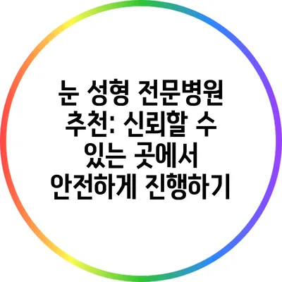 눈 성형 전문병원을 선택할 때는 여러 요소를 충분히 고려하는 것이 중요해요. 신뢰할 수 있는 전연락와 안전한 병원에서 진행해야 하며, 여러 후기를 참고하여 결정하는 것도 큰 도움이 될 거예요. 눈 성형을 생각하고 있다면, 반드시 이러한 기준에 따라 병원을 선택해 보세요.