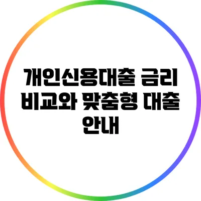 금리가 천차만별인 요즘, 어떤 대출을 선택해야 할지 막막할 수 있습니다. 이러한 고민을 해결하기 위해서는 금리를 비교하고, 내 상황에 맞는 맞춤형 대출을 선택하는 것이 중요해요. 이번 글에서는 개인신용대출의 금리 비교와 한도를 살펴보고, 맞춤형 대출을 통해 어떻게 더 나은 조건으로 대출을 받을 수 있는지에 대해 알아보겠습니다.