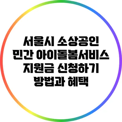 ✅ 서울시 소상공인을 위한 아이돌봄서비스 지원금 신청 방법을 알아보세요.