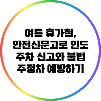 여름 휴가철 직전, 우리는 불법 주정차 문제를 해결하기 위해 노력해야 해요. 안전신문고를 통해 인도 주차를 신고하고, 불법 주정차 예방에 힘쓰는 우리의 작은 실천이 큰 변화를 만들어낼 수 있습니다. 불법 주정차 문제를 함께 해결해 나가요!