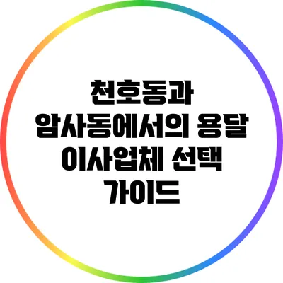 ✅ 천호동과 암사동에서의 최적의 용달 이사업체를 찾는 방법을 알아보세요.