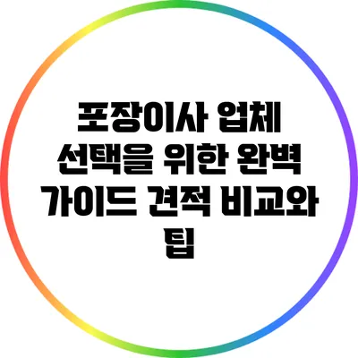 포장이사 업체 선택을 위한 완벽 가이드: 견적 비교와 팁