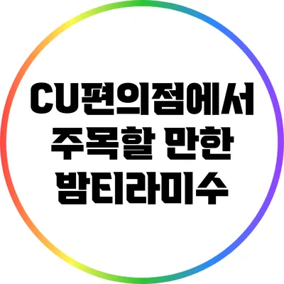 CU편의점은 다양한 간편식과 디저트로 많은 이들에게 사랑받고 있습니다. 그 중에서도 특별히 주목할 만한 것은 바로 ‘밤티라미수’인데요. 이 달콤한 디저트가 왜 이렇게 인기 있는지, 그리고 어떻게 재고를 확인할 수 있는지에 대해 자세히 이야기해 보려고 해요.