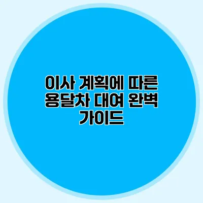 이사를 계획하고 있다면 용달차 대여는 필수적으로 고려해야 할 요소 중 하나예요. 이사를 위해서는 많은 준비물과 프로세스가 필요한데, 그중에서도 적절한 차량을 선택하는 것이 가장 중요해요. 이 글에서는 용달차 대여의 모든 과정과 유의사항에 대해 상세하게 설명해드릴게요.