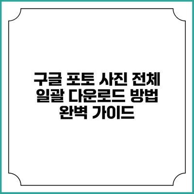 구글 포토에서 사진을 다운로드하는 방법은 여러 가지가 있지만, 전체 사진을 한 번에 다운로드하는 방법이 가장 효율적이에요. 아래의 절차를 통해 쉽게 진행하실 수 있습니다.