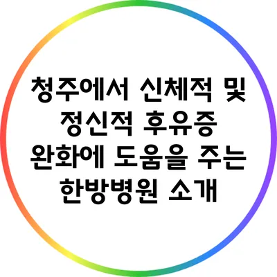 그렇다면 한방병원은 여러분에게 큰 도움이 될 수 있어요. 오늘은 청주에서 일요일에 진료를 받으며 신체적 및 정신적 후유증을 완화하는 데 도움을 줄 수 있는 한방병원에 대해 알아보겠습니다.