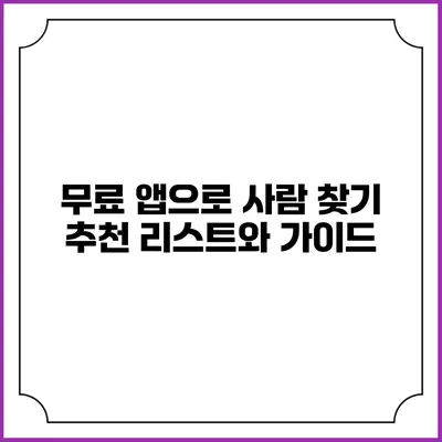 무료 앱으로 사람 찾기: 추천 리스트와 가이드