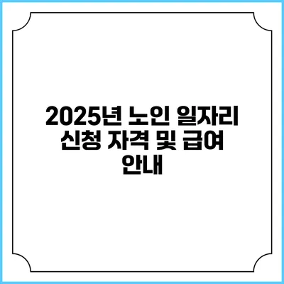 ✅ 2025년 노인 일자리 신청 자격과 급여를 한눈에 알아보세요.