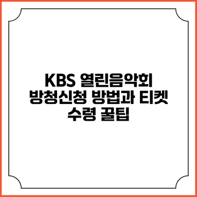 KBS 열린음악회는 매주 일요일 저녁, 다양한 아티스트들의 멋진 공연을 관람할 수 있는 기회를 제공합니다. 이 음악회에 방청하고 싶으신가요? 그렇다면 방청신청 방법과 티켓 수령 꿀팁을 꼭 알아두셔야 해요. 이제부터 단계별로 쉽게 설명해 드리겠습니다.