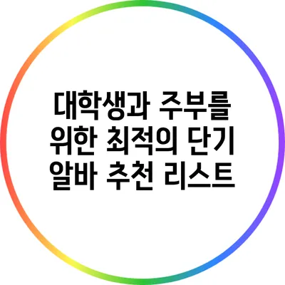 대학생과 주부를 위한 최적의 단기 알바 추천 리스트
